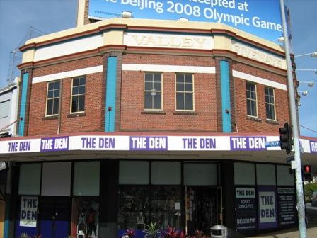 This small but imposing corner building was built circa 1928-29 on the newly created intersection that became known as the Valley Fiveways. This was created by the construction of Barry Parade in 1926-27 through the existing crossroads of Brunswick Street and St Paul’s Terrace (formerly Leichardt Street). The building’s prominence as a landmark at this familiar intersection is reflected in the name “Valley Fiveways Building” which is carved into the façade.